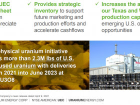 Die UEC-Initiative für physisches Uran umfasst mehr als 2,3 Millionen Pfund in den USA gelagertes Uran mit Lieferungen im März 2021 bis Juni 2023 zu einem Preis von ~$30/lb U3O8 - sie besitzen tatsächlich einen physischen Hort!.."
