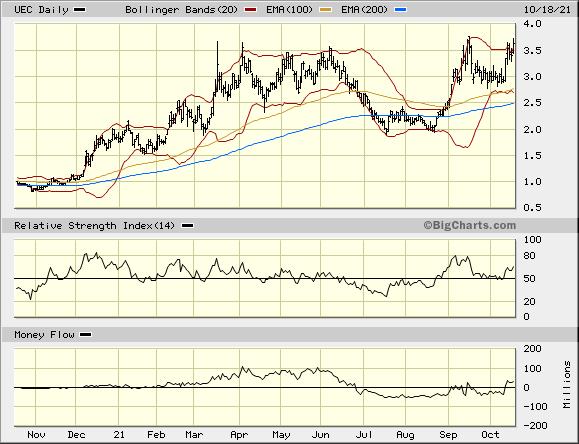 UEC heute wie die Peers mit kräftigem Kursauftrieb extrem dicht am 9 Jahres Hoch + 7,1 % auf 3,65 $.