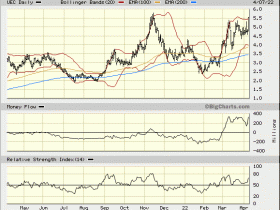 UEC entfernt sich ganz schön GD200, welcher aktuell bei ca. 4,10USD liegt und der Kurs bei 5,83USD. Was meint Ihr? Ausbruch nach oben abwarten oder lieber Traden und mal Gewinne mitnehmen?