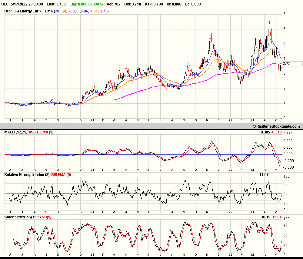 Die beiden letzteren sind ein sicheres Zeichen rel. Stärke. Ersichtlich hat UEC eine gewaltige Vola, aber der Trend ist eindeutig.