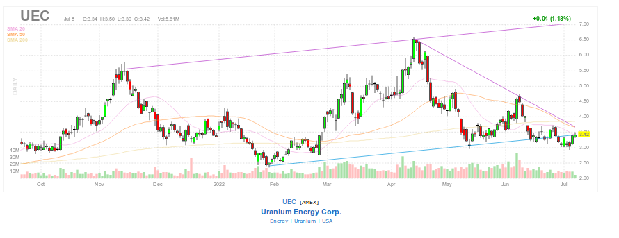 UEC startete mit 3,10 $, momentan 3,34 $ +10,2 % ![]()