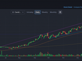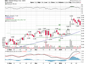 Nach dem Ausbruch Ende Dezember aus dem Dreieck (blaue Linie) ging es wie ein Pfeil hoch. Nun hat der MACD ein Verkaufssignal geliefert und wir gehen in einem Kanal seitwärts abwärts.