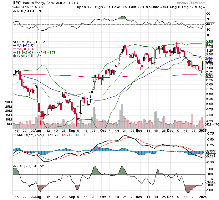 Der Chart von UEC sagt mir nach der Konsolidierung zu , habe 1/3 zugekauft zum höchsten jemaligen Bestand....