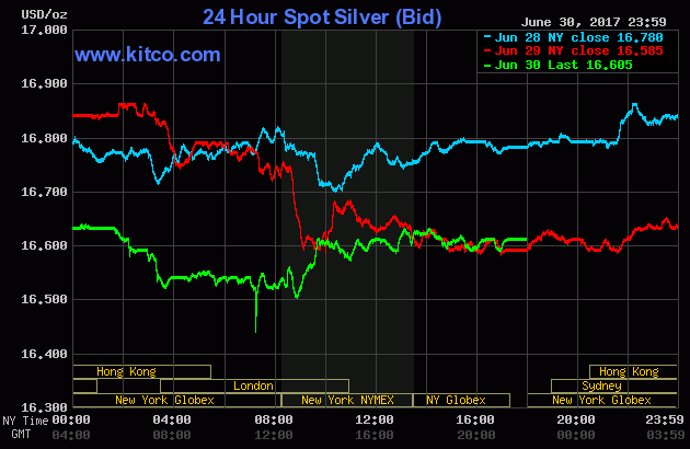 >>Welchen Kurs in US Dollar sehen wir Ende Juni 2017 am Globex Markt NY Kitco für eine Unze Papiersilber ? <<