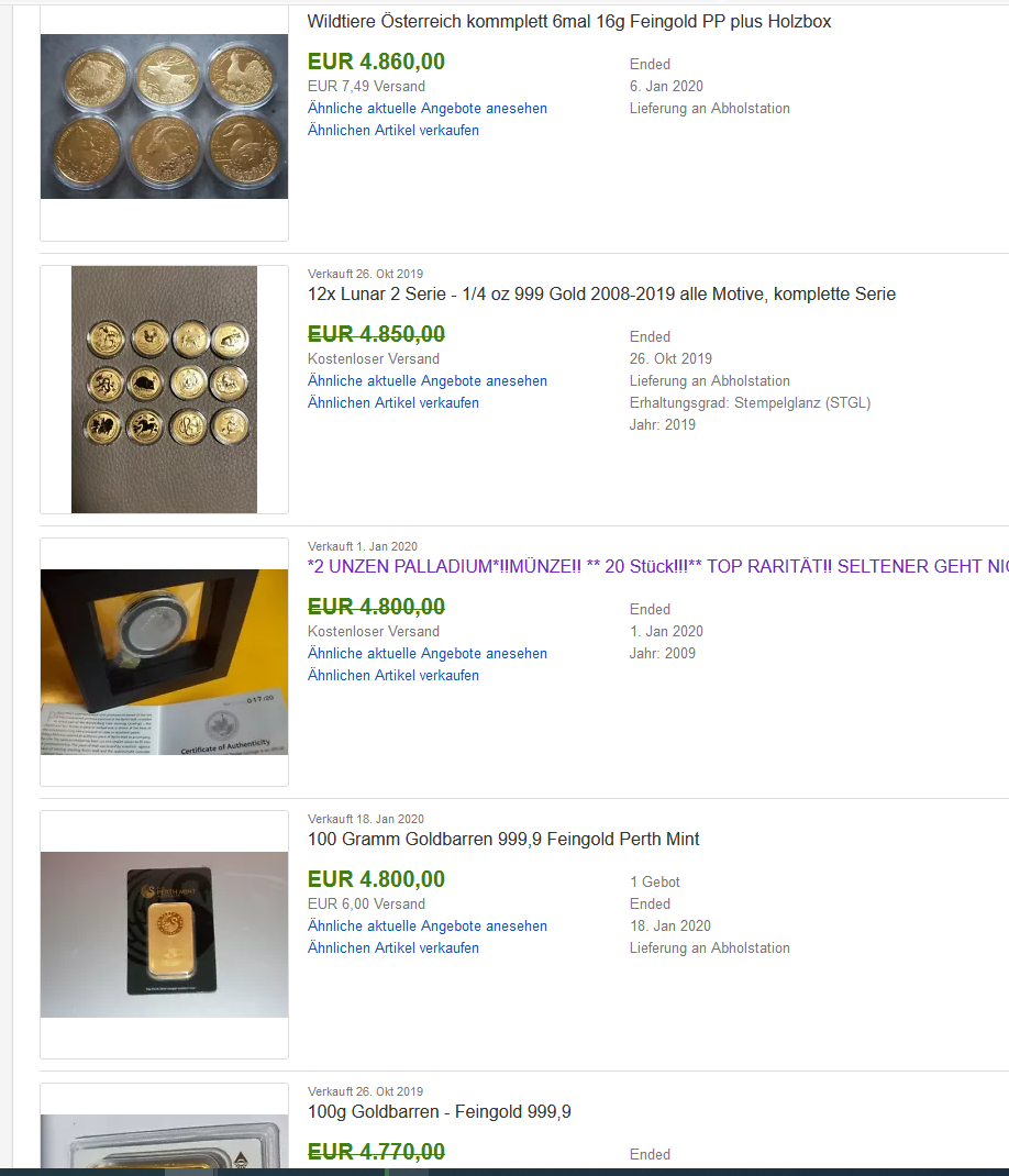 Alles anzeigenWie siehts mit Palladium aus, Münzen Barren etc?