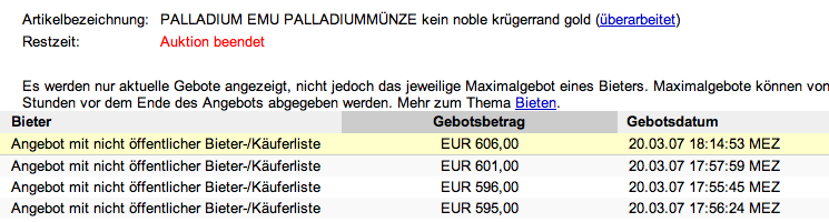 Heftig fand ich gestern auf Goldseiten nur diesen geposteten Artikel über Ebay.