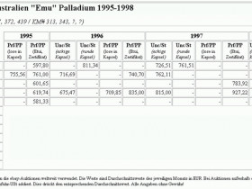 Wenn die Perth Mint schlau gewesen wäre, und ich denke, dass diese es auf jeden Fall ist, dann hätten die mögliche Einlagerungen in Pd sicherlich in 2000/01 eingeschmolzen bzw. zu einem sehr guten Kurs verkauft.