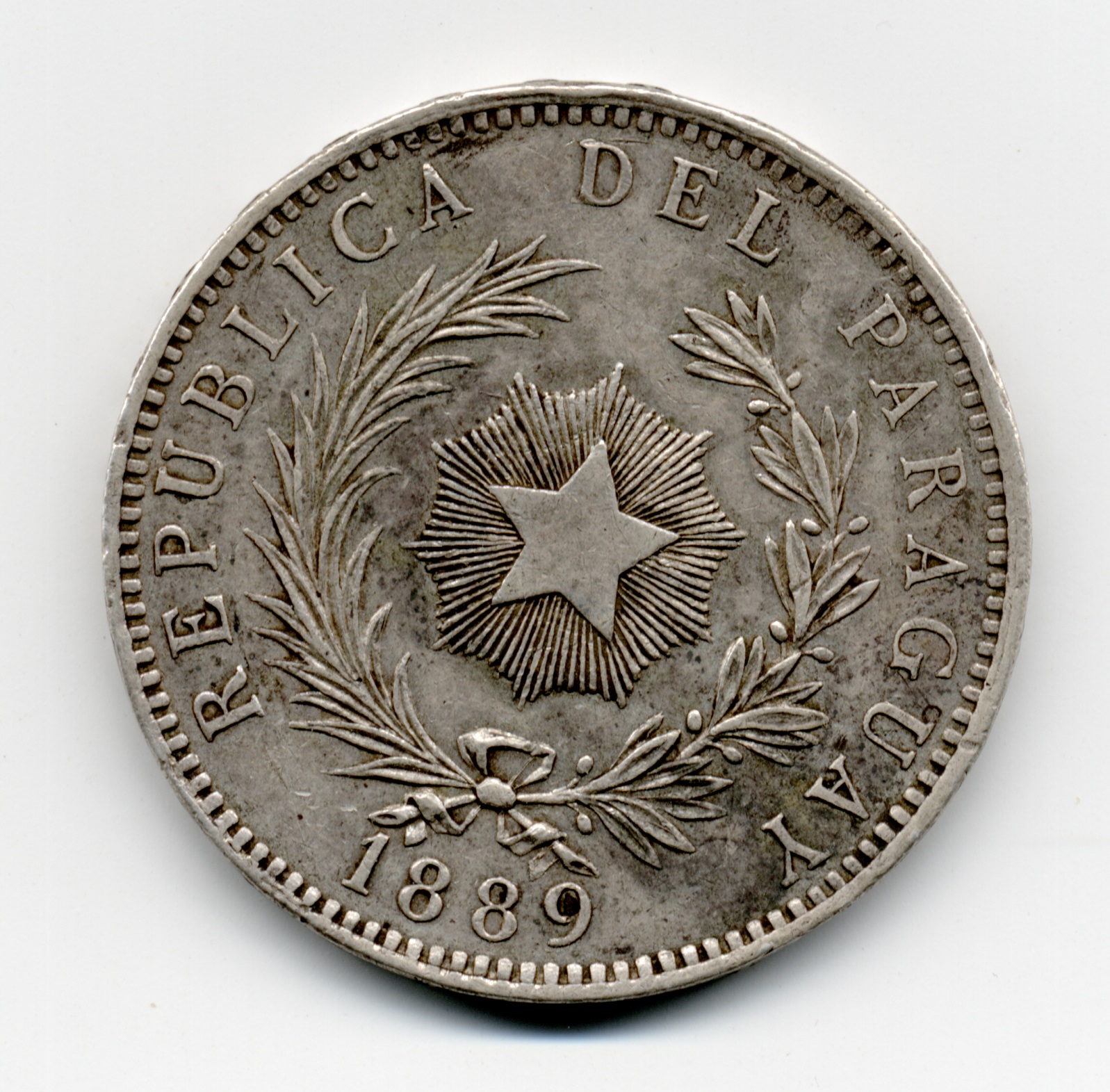 lings un Peso Paraguay 1889, nicht magnetisch, Gewicht 18,14g statt 25g, glatter Rand -