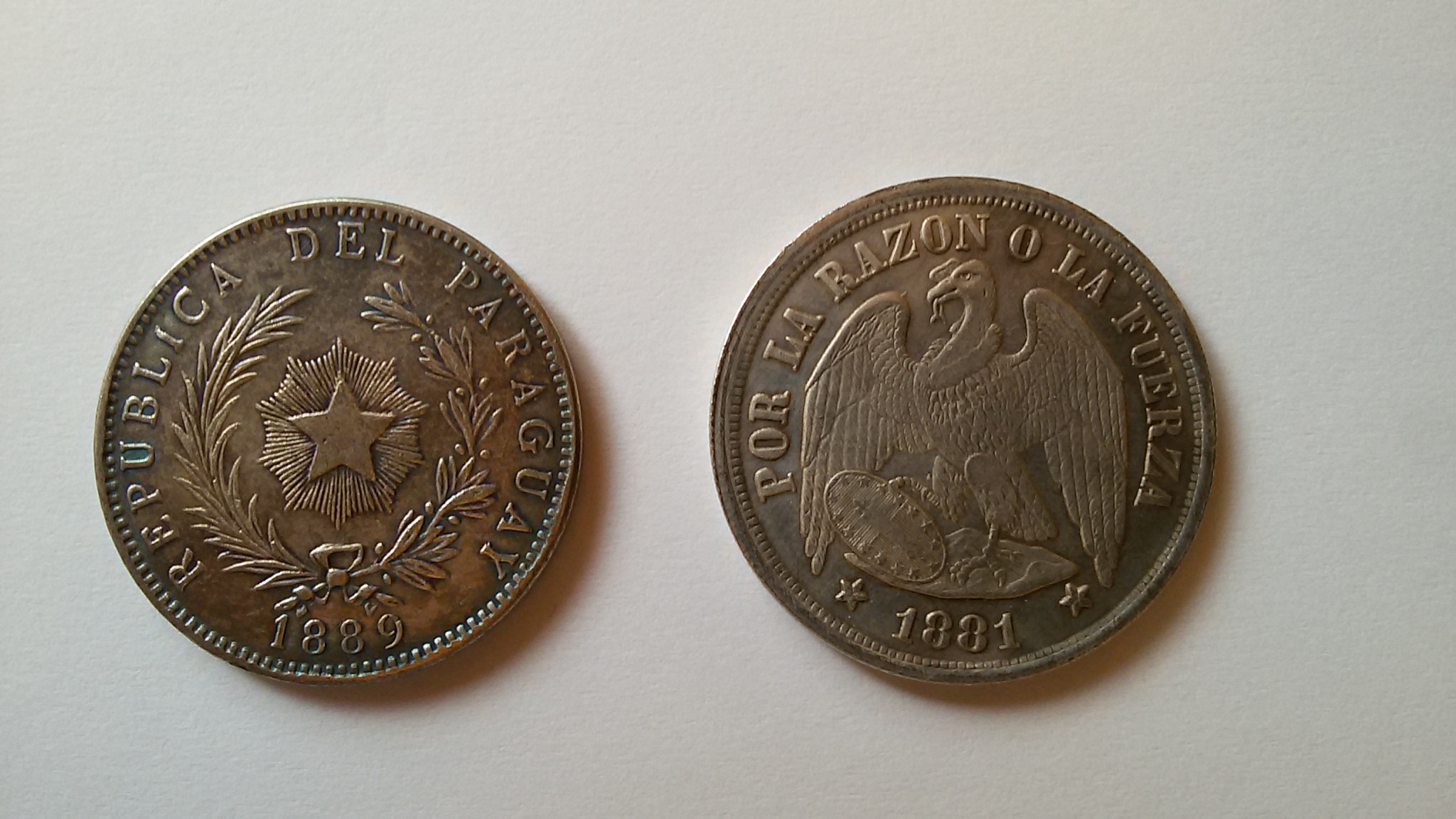 lings un Peso Paraguay 1889, nicht magnetisch, Gewicht 18,14g statt 25g, glatter Rand -