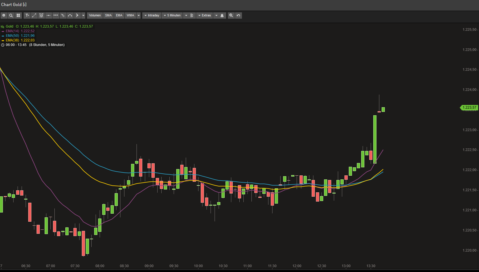 Also, im 5 Minuten Chart ist Intraday ein Aufwärtstrend erkennbar.