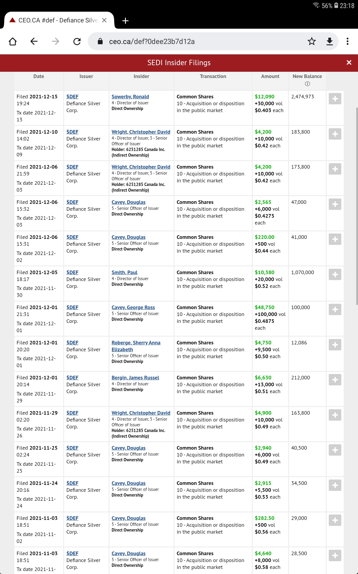"Im Namen des Unternehmens und des Boards möchte ich Darrell für seine Dienste für das Unternehmen danken. Als einer der ursprünglichen Gründer von Defiance hat Darrell einen bedeutenden Beitrag dazu geleistet, dass das Unternehmen seine Silberprojekte in Zacatecas vorantreiben und das Gold-Kupfer-Projekt Tepal entwickeln konnte. Wir wünschen Darrell alles Gute bei seinen zukünftigen Unternehmungen", sagte Chris Wright.