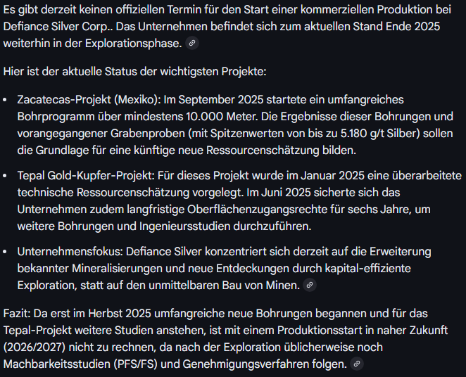 • ich habe mal die KI befragt, wann mit einem Produktionsstart bei Defiance zu rechnen ist...