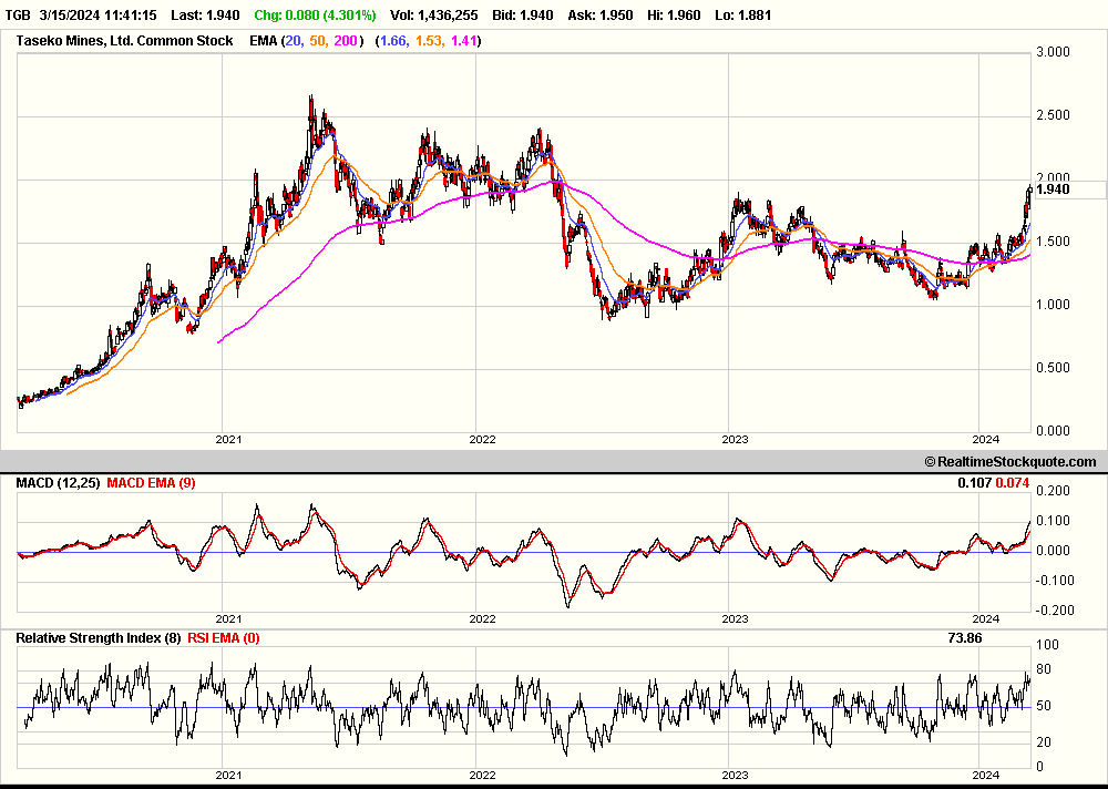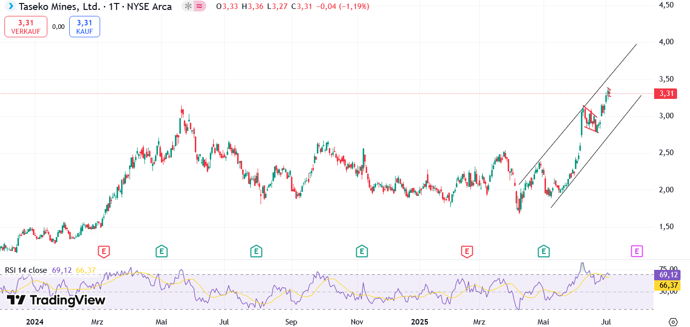 "Die Änderung des Silberabkommens folgt auf den Erwerb der restlichen 12,5 % der Anteile am Joint Venture Gibraltar im vergangenen März, und die zusätzlichen Bareinnahmen stärken unsere Bilanz in dieser Zeit der Bauausgaben bei Florence Copper weiter", sagte Stuart McDonald, Präsident und "Die Änderung des Silberab-kommens folgt auf den Erwerb der restlichen 12,5 % der Anteile am Joint Venture Gibraltar im vergangenen März, und die zusätzlichen Bareinnahmen stärken unsere Bilanz in dieser Zeit der Bauausgaben bei Florence Copper weiter", sagte Stuart McDonald, Präsident und CEO von Ta seko. Taseko wurde zuletzt an der Toronto Stock Exchange mit einem Plus von 0,31 $ auf 3,37 $ gehandelt, prozentuale Veränderung: +10,13%.
