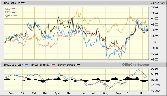 NXE seit Monaten etwa im Gleichschtitt mit dem bisherigen Outperformer UEC und dem URA, der Dämpfer nach dem hohen Urankauf ist ausgeglichen...