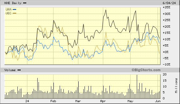 NXE seit Monaten etwa im Gleichschtitt mit dem bisherigen Outperformer UEC und dem URA, der Dämpfer nach dem hohen Urankauf ist ausgeglichen...