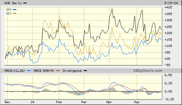 NXE seit Monaten etwa im Gleichschtitt mit dem bisherigen Outperformer UEC und dem URA, der Dämpfer nach dem hohen Urankauf ist ausgeglichen...