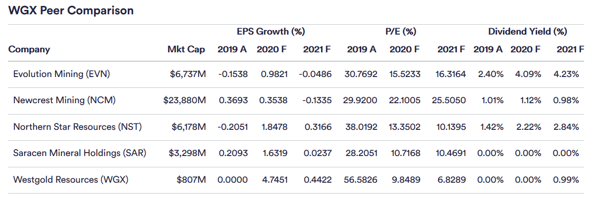 Westgold Kennziffern im Vergleich
