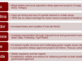 Die Vorkommen sind hauptsächlich in Equador (in o.g. prozentualer Aufteilung in Gold, Silber u. Kupfer) und ein kleiner Explorationsanteil in Namibia. (Silber u. Kupfer)