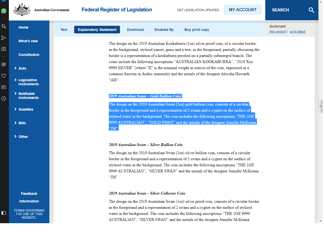 Auf die Schnelle kann ich dort unter Nr. 3 nur die Genehmigung für den 5 oz Silberschwan finden: