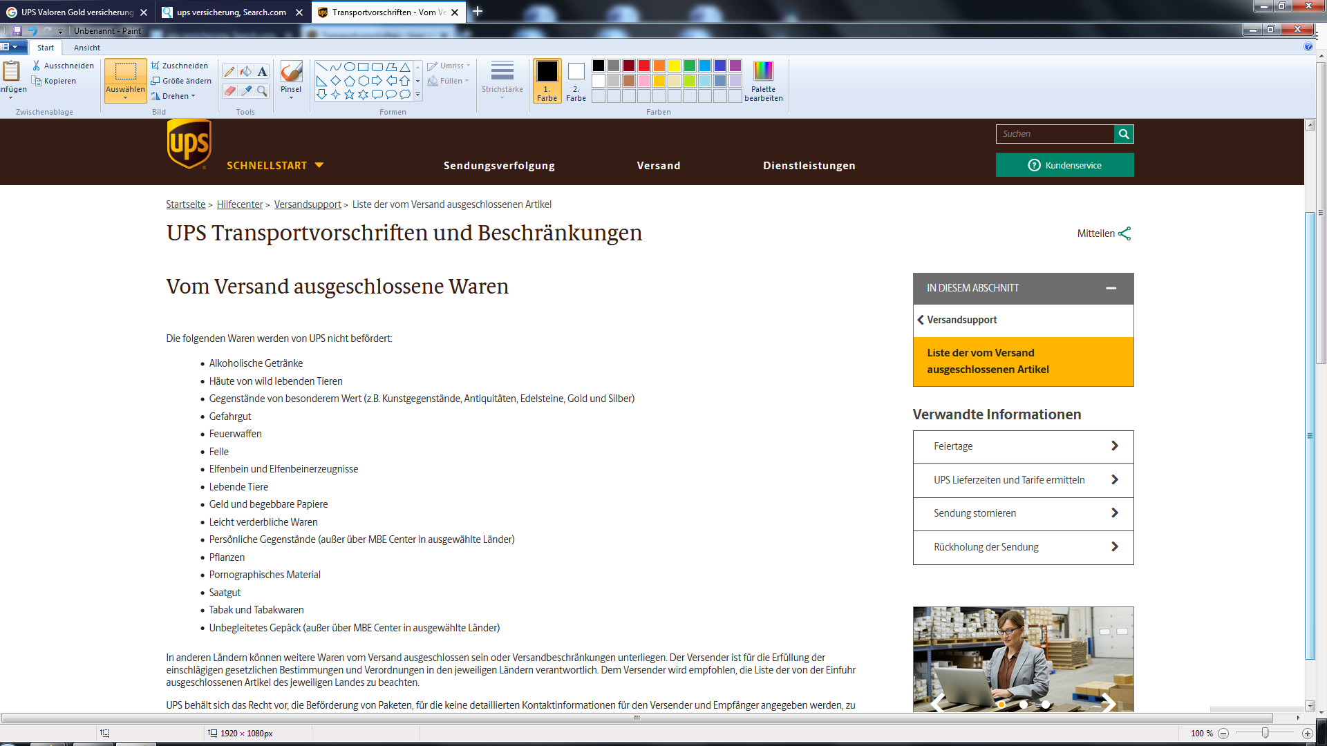 UPS Transportvorschriften und Beschränkungen