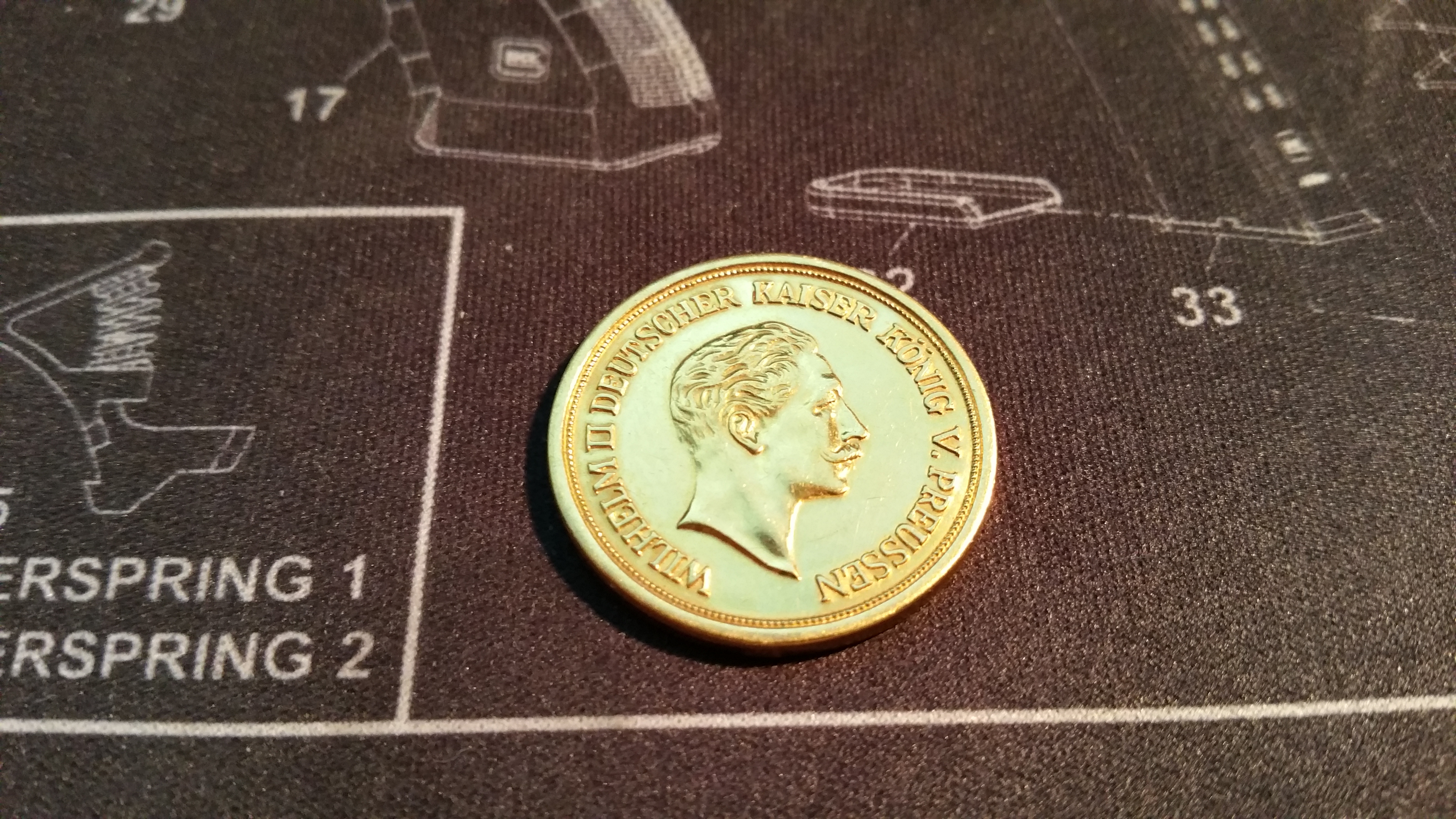 • Vielen Dank für eure Antworten. Das es 50 Goldmark nicht gab weiß ich und das es ne Medaille ist auch... Ich bin vielmehr daran interessiert, welchen Goldgehalt das Dingen hat und von welcher Bude es ist. Ich kann leider nur bis 21,6 Karat testen...