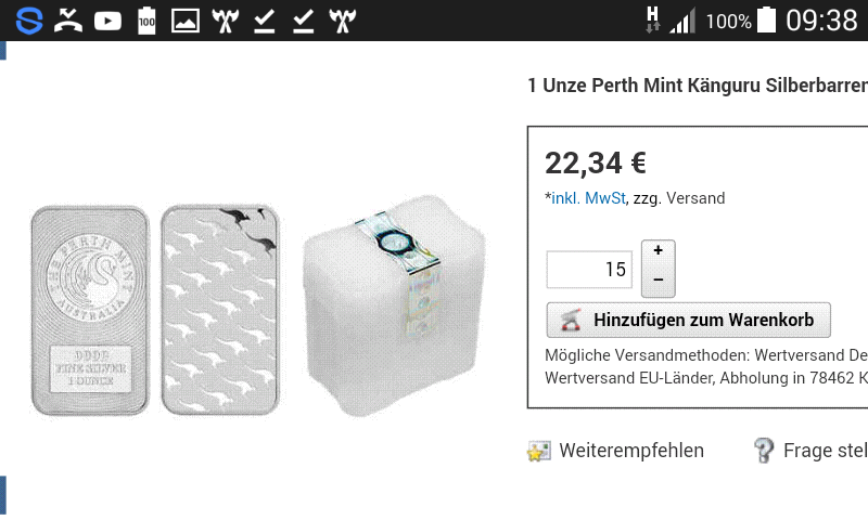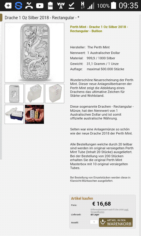 Zudem ist der normale 1 OZ Anlagebarren der Perth m.W. nach nicht auf 500 k gedeckelt.