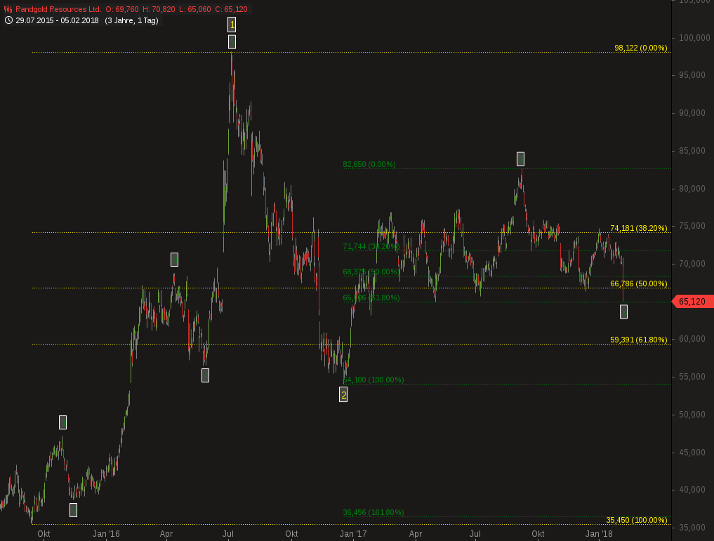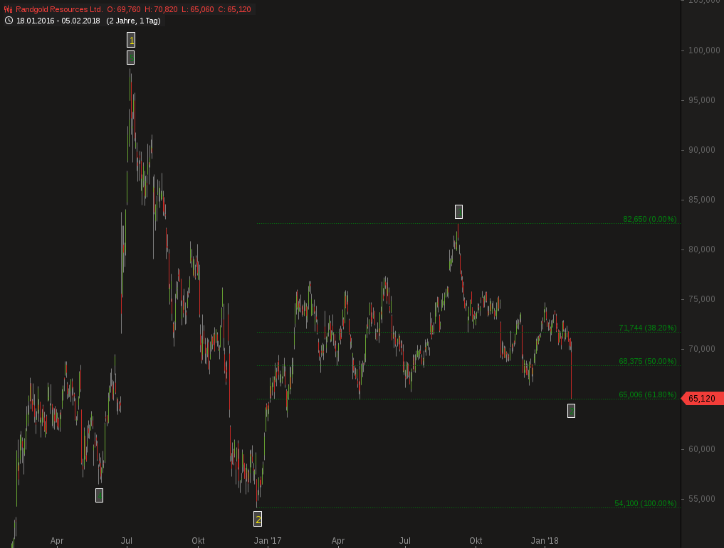 RRS machte heute bislang sein Tief bei 73,33 € und setzte damit exakt auf der Unterstützung von 6.500 brit. Pence auf, was ich zum erstmaligen Kauf von RRS nutzte.