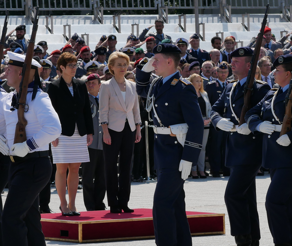 Warum man bei der Veranstaltung auch noch die Hand an der Kappe halten muss, quasi nen Militärischen Gruß macht, für ne Ministerin, wenn sich die Chefin bei der Nationalhymne setzt, ist mir ein Rätsel.
