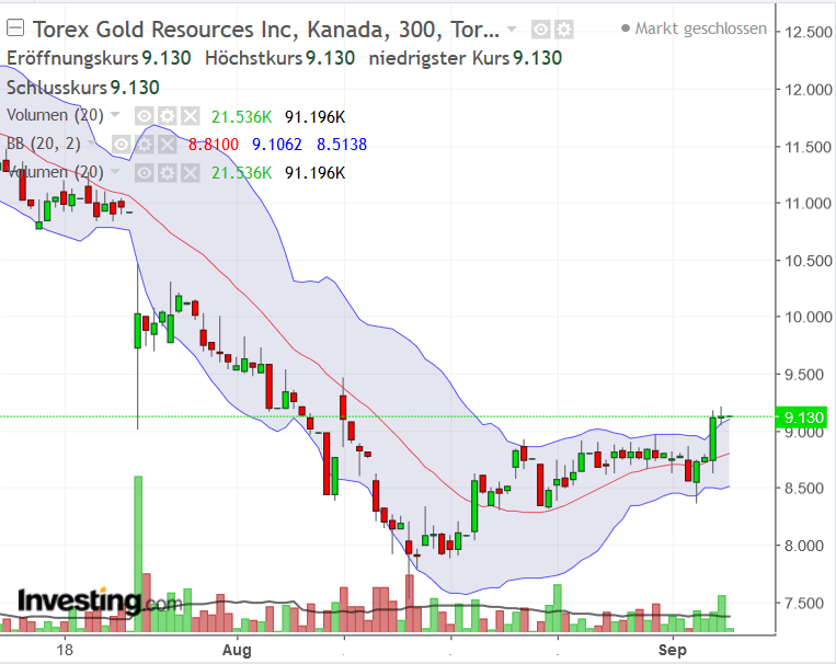 Viel erfreulicher dagegen , die weitere Kursentwicklung von Torex , wieder mit derzeit ca. 3% aufwärts.