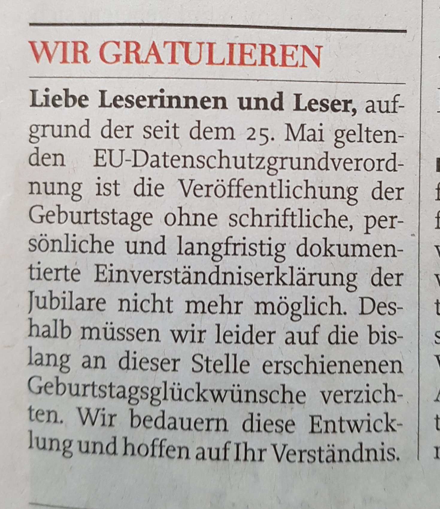 Vorher hat sich so manch einer nicht drum geschert (sprich das BDSG einfach missachtet) und wenn doch einer sich mit dem Datenschutzfähnchen in der Hand zu Wort gemeldet hat, wurde er als paranoider Wichtigtuer bis hin zum Paragraphenreiter und Verschwörungstheoretiker abgestempelt. (Habe oft im privat-gesellschaftlichen Umfeld (Gemeinde/Vereine/etc.) blöde Blicke kassiert, wenn ich anmerkte, dass man Namen oder Fotos nicht so einfach machen und veröffentlichen darf.)