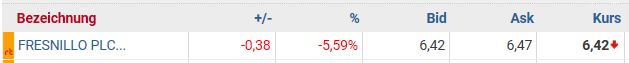 Die Dividende bei FRES fällt im August mit 2,6 USD Cents gering aus, Ursache dürften die schwachen Zahlen sein. Es kommen mit an Sicherheit grenzender Wahrscheinlichkeit auch wieder bessere Zeiten. Für mich bei dem EK erstmal eine Aktie zum "liegen lassen".