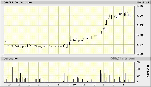 McEwen, Robert R. hat zwischen dem 23.08. und dem 01.10. 2019 ca. 1,3 Mio Shares von GBR zu Kursen zwischen 6,35 C$ und 8,79 C$ verkauft.