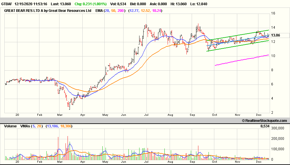 Die nächsten grandiosen Bohrergebnisse, aber was macht der Kurs von Great Bear Resources (- 1,21 %) bei einem steigenden Goldpreis (+ 1,62 %) und das bei einem mehr als doppelten Handelsvolumen in Toronto wie im Durchschnitt. Was ist da los ?