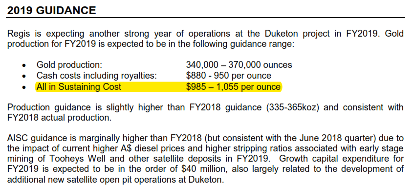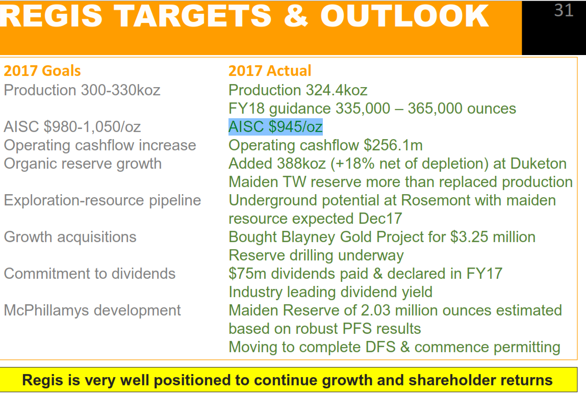 Production at upper end of FY18 guidance & AISC below bottom of guidance