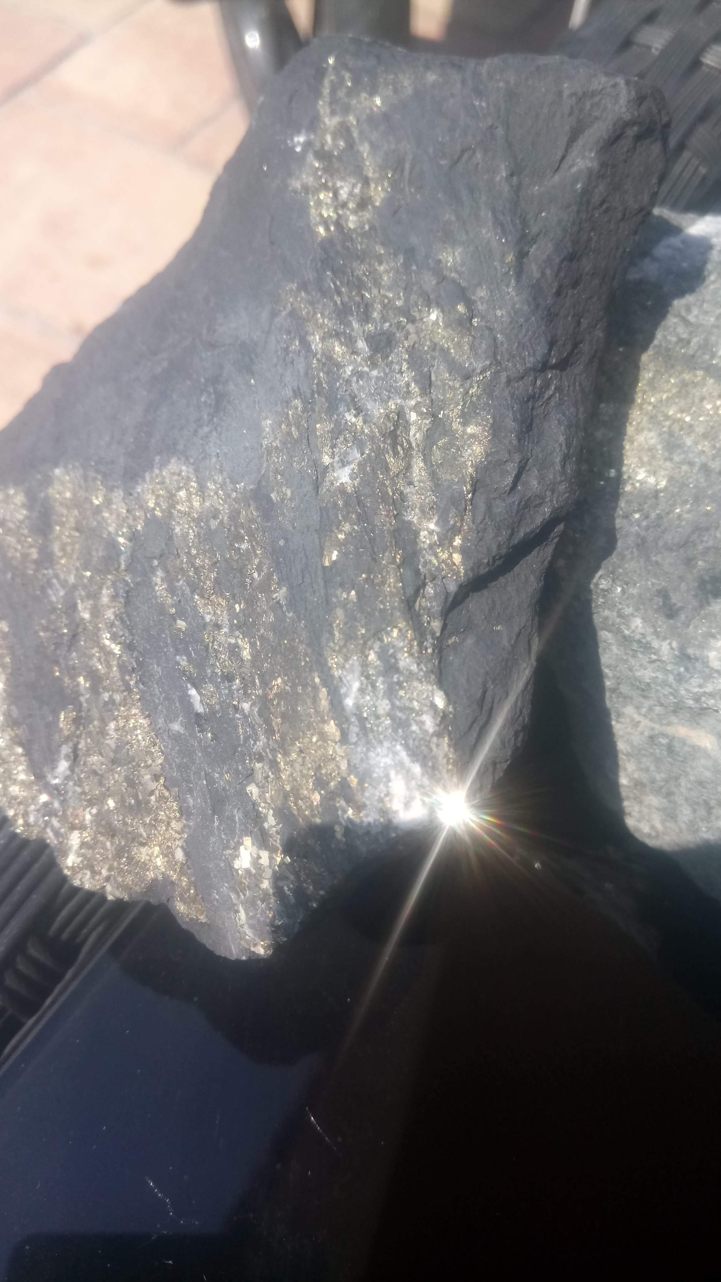 vielleicht könnt ihr mir Helfen, ich habe vor ein paar Tagen mehrere Steine erhalten die mit Quarz und etwas das wie Gold aussieht durchzogen ist,