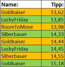 - Alle eingegangenen, gültigen, Tipps werden nach Tippende hier im Thema veröffentlicht.