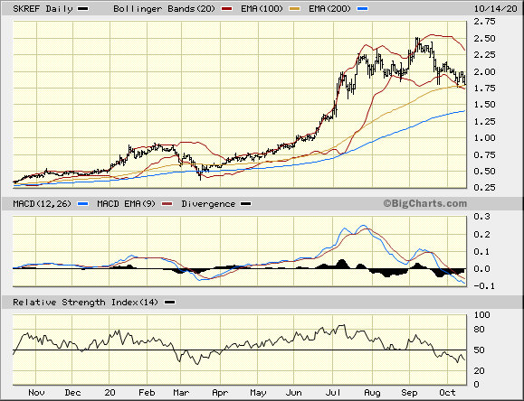 Die gezeigte Lücke bei 2,05 C$ trifft für SKE zu, mein Chart zeigte die Lücke entsprechend bei 1,6 $ für SRKEF.