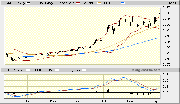 Die gezeigte Lücke bei 2,05 C$ trifft für SKE zu, mein Chart zeigte die Lücke entsprechend bei 1,6 $ für SRKEF.