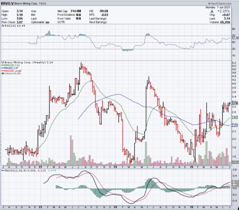 Marktkapitalisierung 314 Mio (lt Stockcharts.com) oder 342,5 Mio CAD (lt. Yahoo Finance???) am 07.07.2025 bei 3,14 CAD/Aktie.