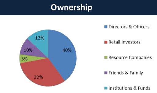 78,2 mio Aktien. Der Anteil des Managements beträgt 40 %, weitere 10 % halten Freunde & Familie. Dies ist höchst ungewöhnlich und bewog mich mehr als die guten Bohrproben zum Einstieg nach einer temporären Kursschwäche.
