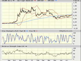 So am 23.01. Inzwischen erholt sich der Kurs und arbeitet seine Indikatoren Tiefs ab, eindrucksvoll zuvor der lange absteigende MACD. Auch winkt die Schließung der letzten Lücke bei 1,1 C$....