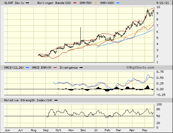 Der Chart des SLSSF mit dem beeindruckenden Anstieg und rel.Stärke....
