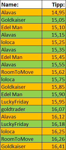 • Alle eingegangenen, gültigen, Tipps werden nach Tippende hier im Thema veröffentlicht.