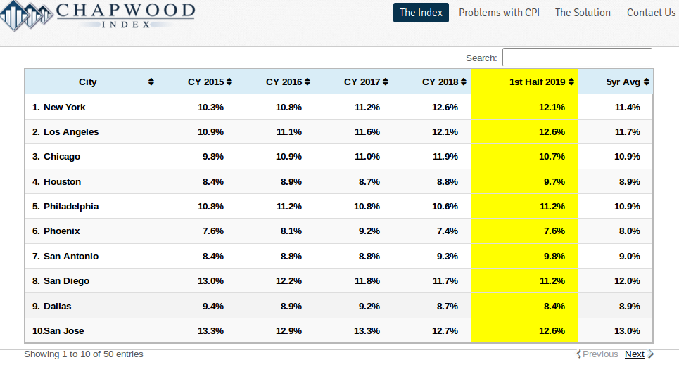 Mit einem Blick erkennbar ist der ungeheure Unterschied zu den lächerlichen offiziellen US Teuerungsraten um 2 %.