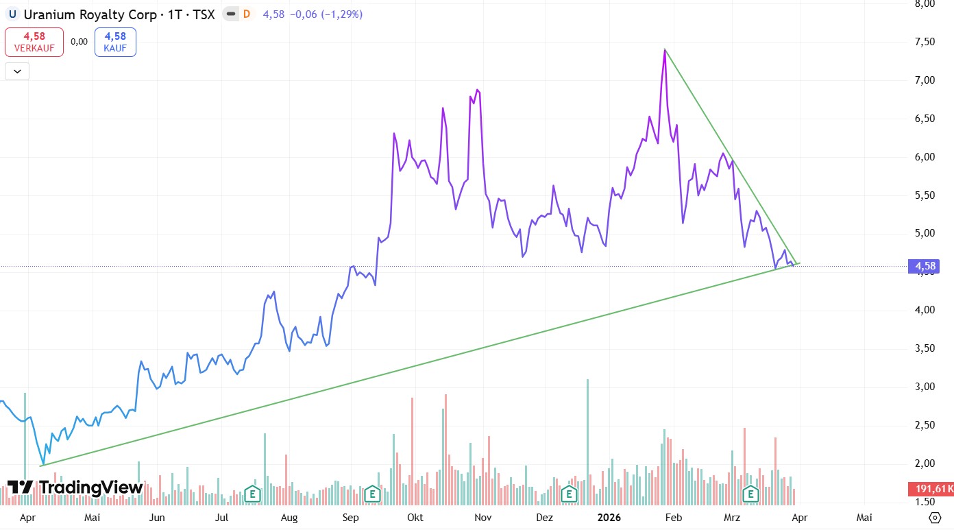 Uranium Royalty Corp (URC) konzentriert sich darauf, durch strategische Investitionen in Uranbeteiligungen, einschließlich Royalties, Streams, Krediten und Aktien von Uranunternehmen, sowie durch physische Urangeschäfte an den Uranpreisen zu partizipieren. Die Strategie des Unternehmens erkennt die inhärente Zyklizität von Bewertungen auf der Grundlage von Uranpreisen an, einschließlich der Verfügbarkeit von Kapital in unterschiedlichen Preisumgebungen. URC ist das erste Unternehmen, das das erfolgreiche Lizenzgebühren- und Streaming-Geschäftsmodell ausschließlich auf den Uransektor anwendet. Das Unternehmen ist reich an Barmitteln und verfügt über große liquide Vermögenswerte.