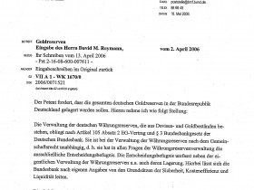 Das Schreiben stinkt doch meilenweit gegen den Wind danach, daß überhaupt kein Eigentum an physischem Gold mehr besteht, sondern nur noch Papierwerte vorhanden sind. Das physische Gold ist sicher schon lange verkauft, getauscht, verliehen oder sonst was.