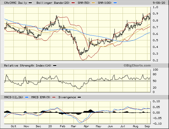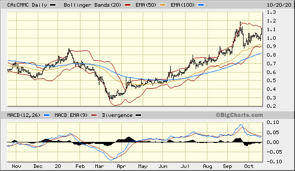 CMMC trotzt allen Theorien und Meinungen ... und steigt vehement weiter, gestern auf 1,18 C$ + 9,2 % = 2 JH.