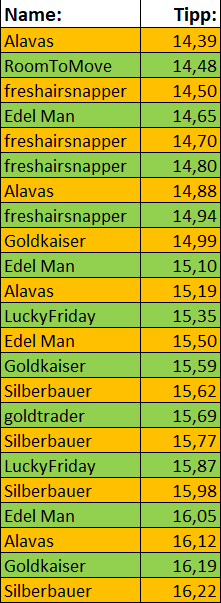 - Alle eingegangenen, gültigen, Tipps werden nach Tippende hier im Thema veröffentlicht.