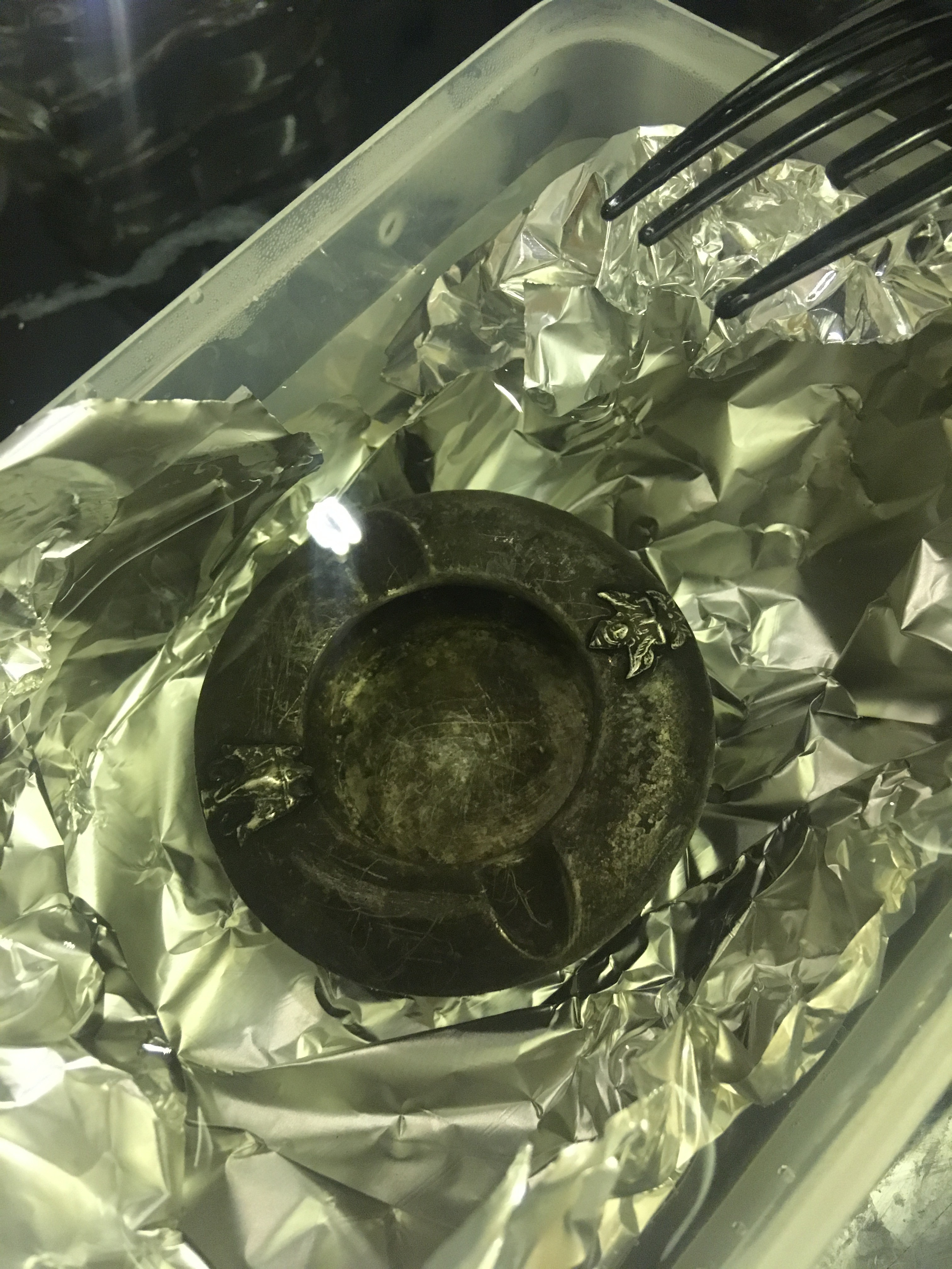 Das Stück ist sehr stark angelaufen so dass ich es eigentlich gerne von der Patina befreien würde zumal ein Verkauf nicht geplant ist.