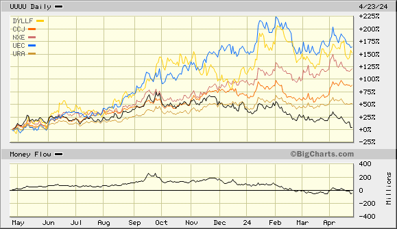 Ein Chartvergleich mit dem URA und einigen bekannten Peers zeigt die höchst unbefriedigende Entwicklung der EFR / UUUU.